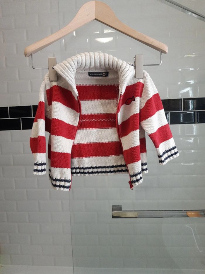 Gilet garçon rouge et blanc 100 % coton #garcon12mois #gilet #weekendalamer #coton