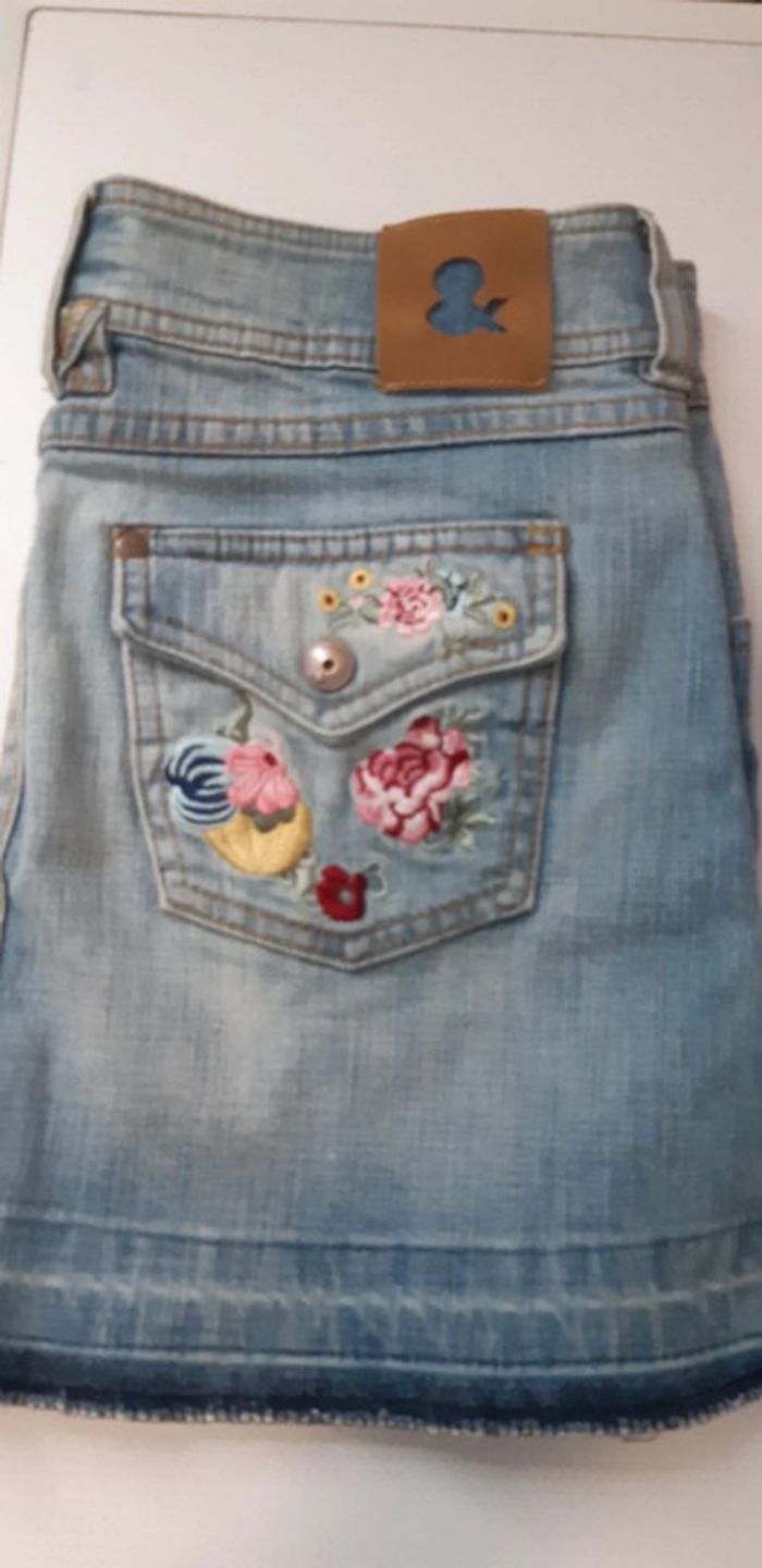 Jupe en mode used avec broderies avec poches.longueur 34 cm #sandrine924fille12ans #used #été #broderie #hm #jupe