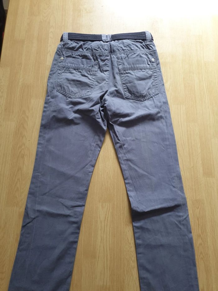 pantalon couleur gris bleu avec ceinture bon etat, petites traces en bas des jambes #cat78440_11ans_garcon