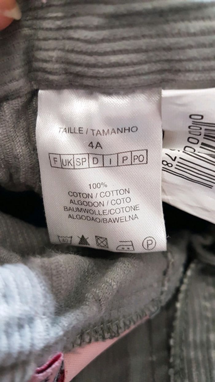 Pantalon côtelé, petits diamants sur les bouton. Plutot serré a la taille, convient pour yne taille.plutot fine #cat78440_4ans_fille