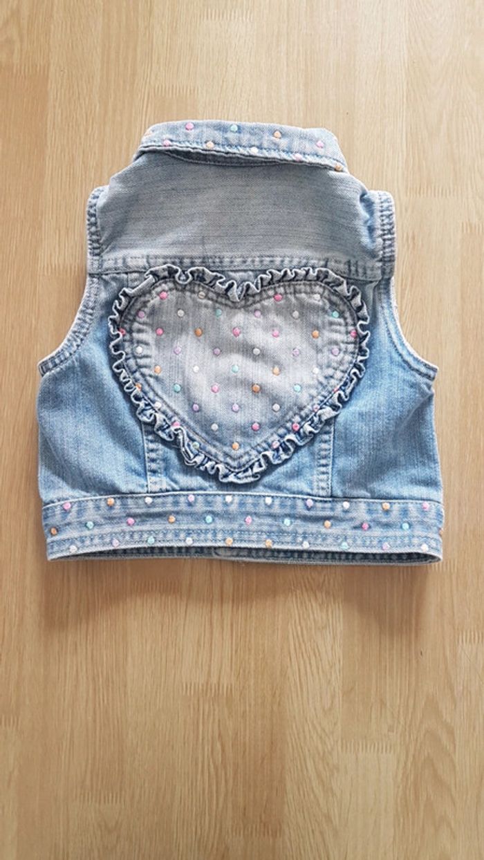 Veste en jean sans manches 104 cm motifs coeurs - photo numéro 1