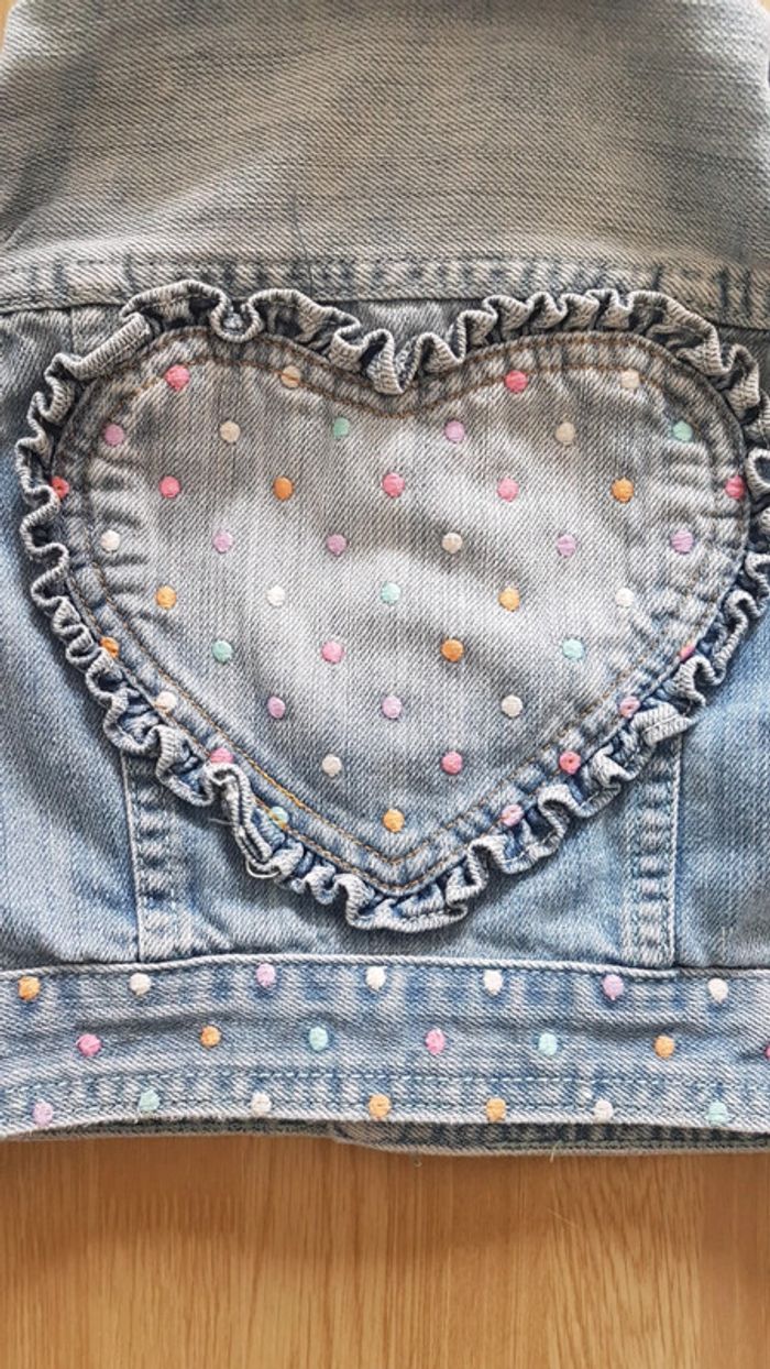 Veste en jean sans manches 104 cm motifs coeurs - photo numéro 6