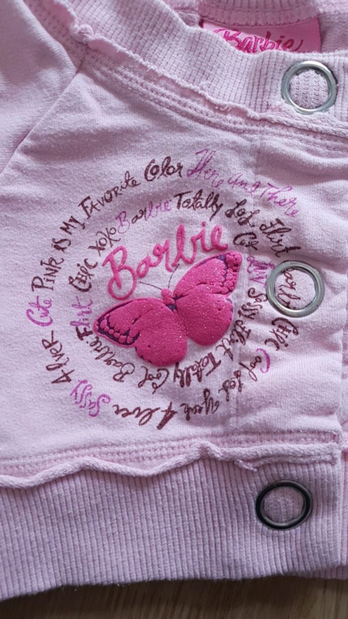 Petit gilet court, sans manches. Bon etat, il manque quelques brillants sur l'ecriture Barbie dans le dos. Sequins sur le papillon du dos un peu abimés #cat78440_5ans_fille