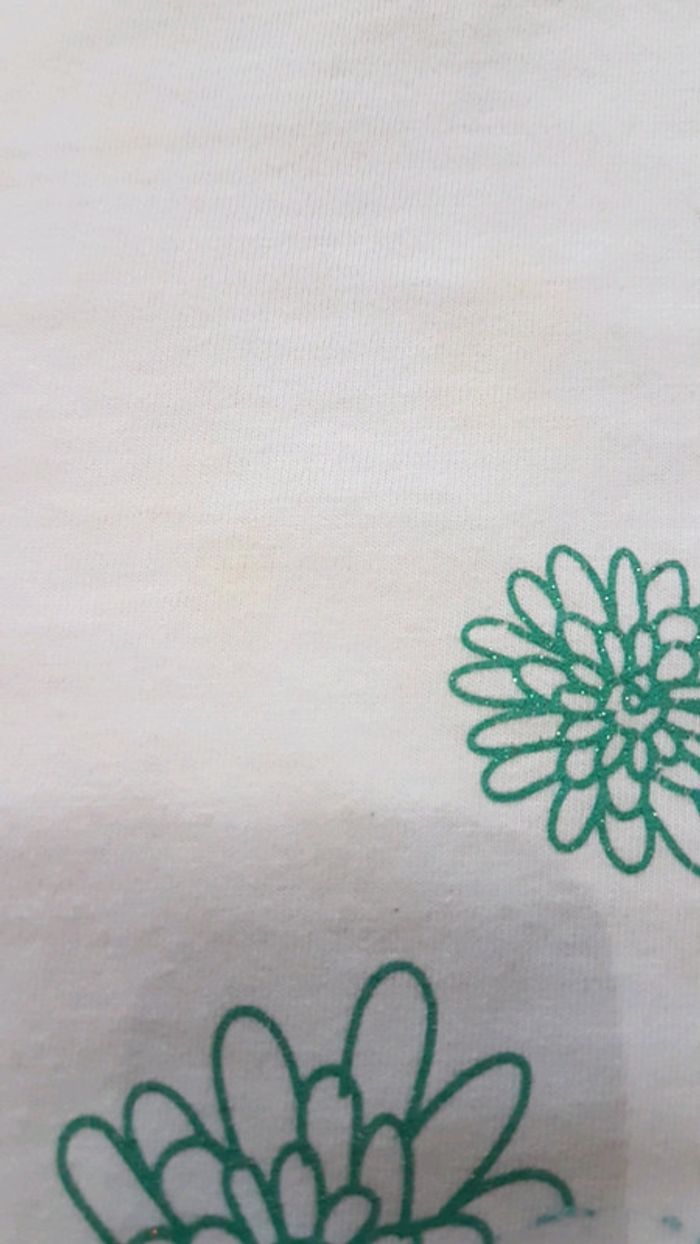 Fleurs vertes légèrement pailletė, quelques tâches sur le devant du t shirt #cat78440_6ans_fille