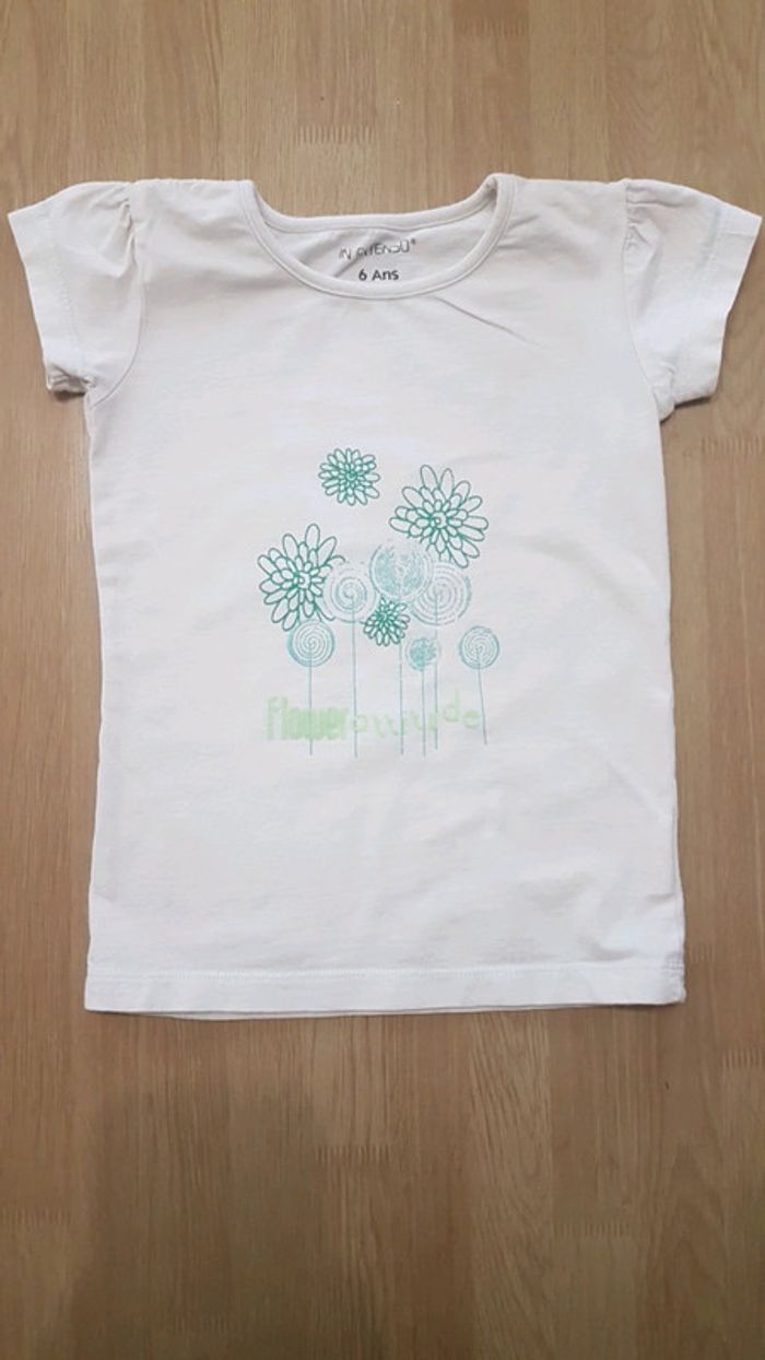 T shirt blanc motif fleurs vertes 6 ans - photo numéro 1