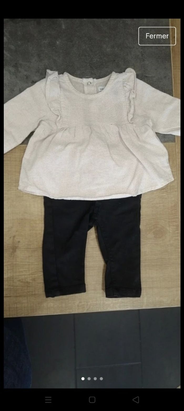 Ensemble verbaudet composé d'un jean noir et d'une blouse rose pâle et pailleté.