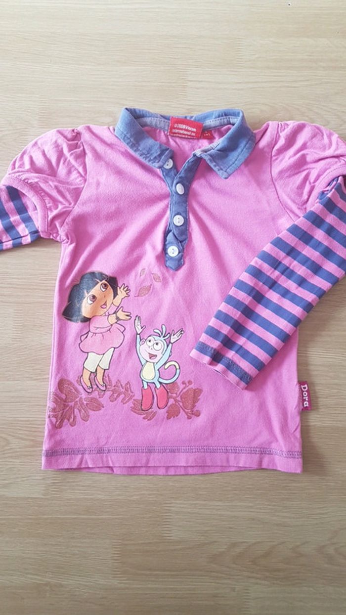 Polo Dora rose avec rayures violettes 4 ans - photo numéro 1