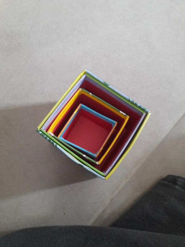 Bonjour Je vends une pyramide à emboitement, en carton. Bon état général voir photos. C10
