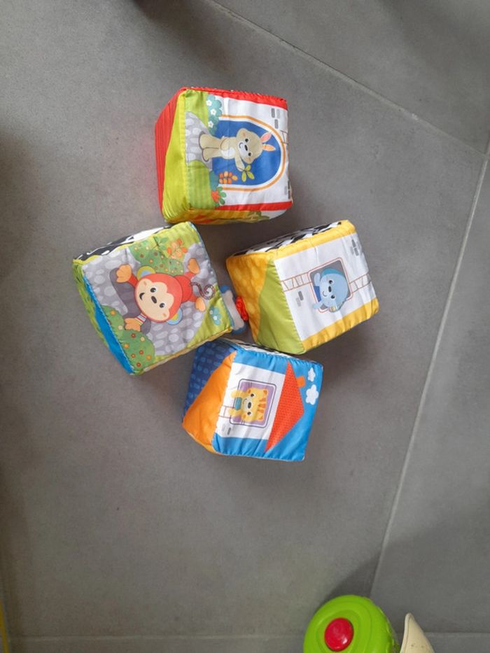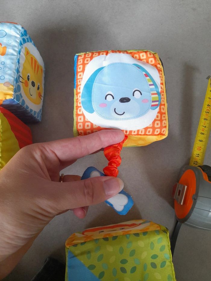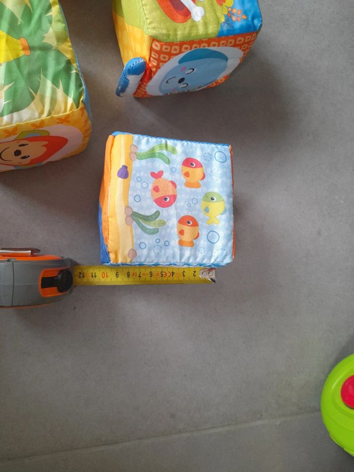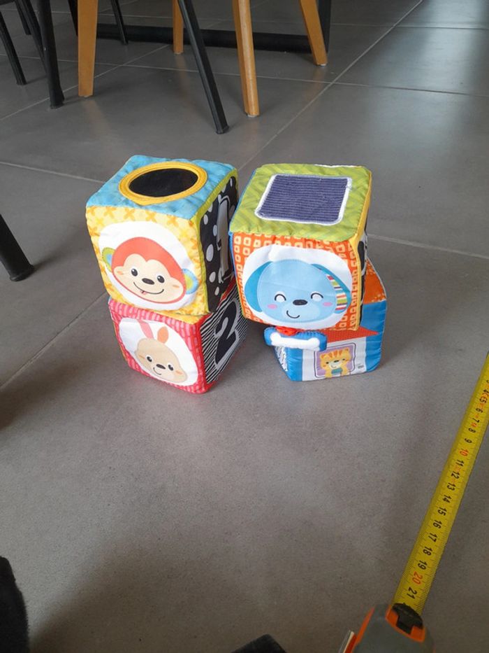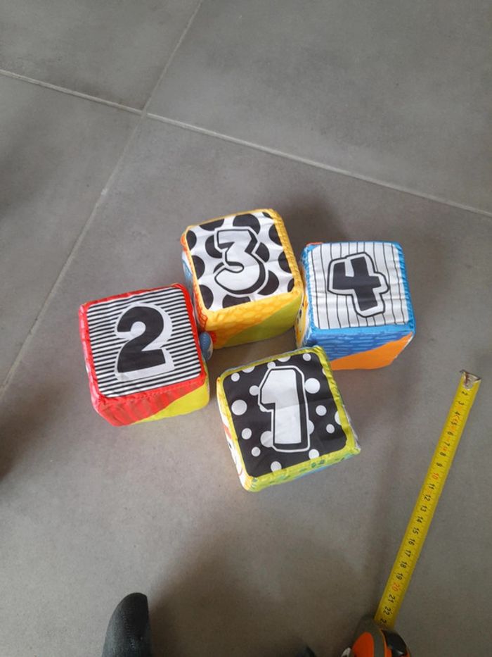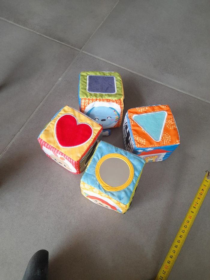 Bonjour Je vends un lot de trois carrés en tissu. Idéal pour la motricité de bébé, chaque face permet d'apprendre de nouvelles choses. C10