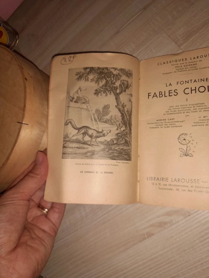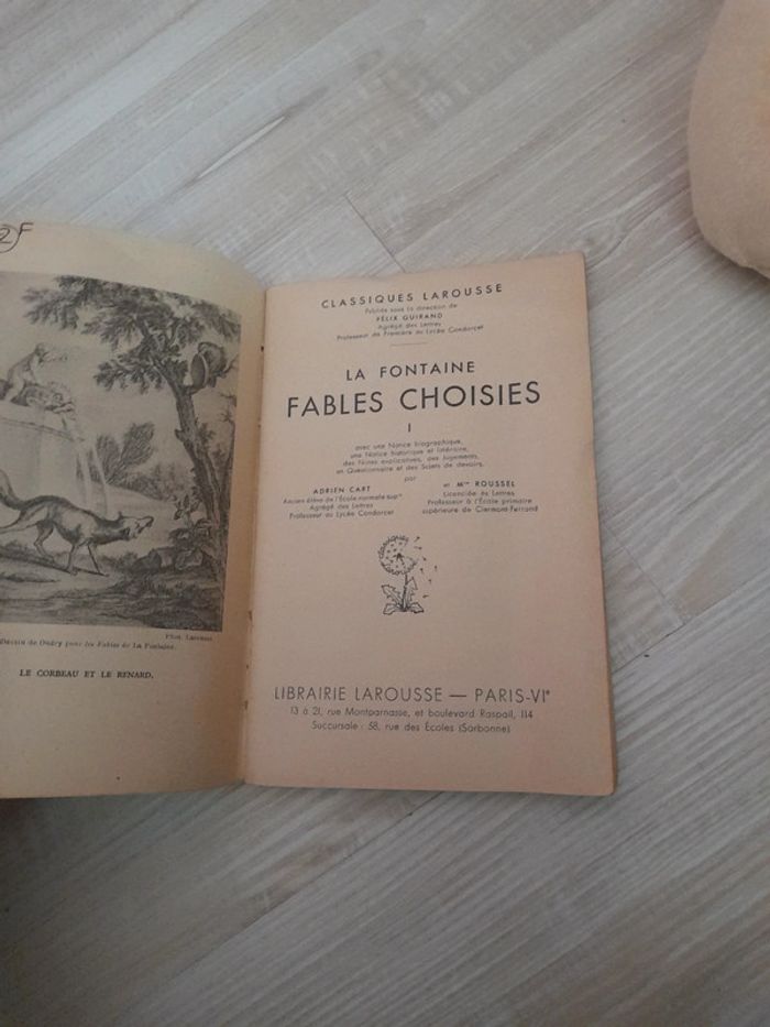 Bonjour Je vends un livre la fontaine fables choisies 1, classique larousse. Idéal collectionneur