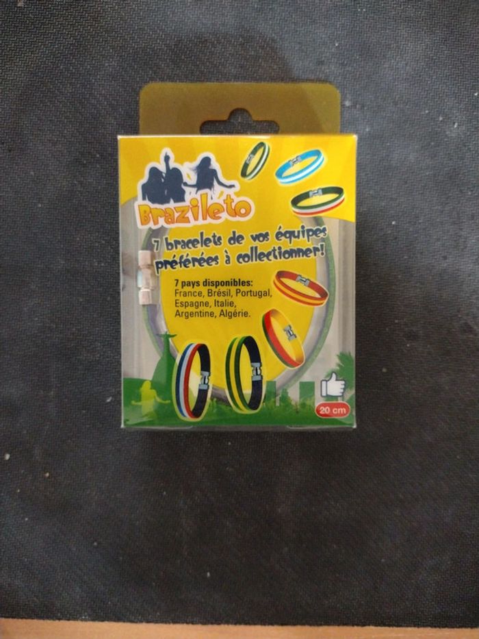 Bonjour, Je vends ce bracelet de 20cm aux couleurs du Brésil. Neuf, jamais porté, ni utilisé. Cordialement, C1