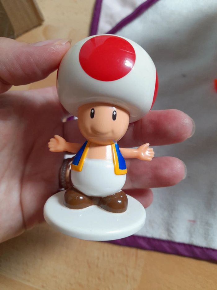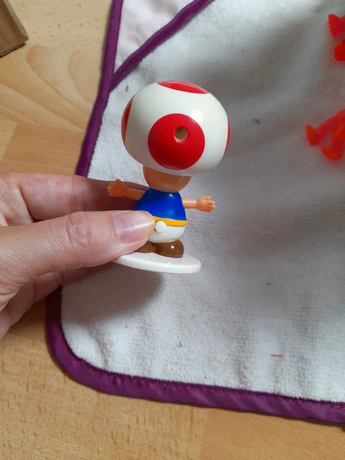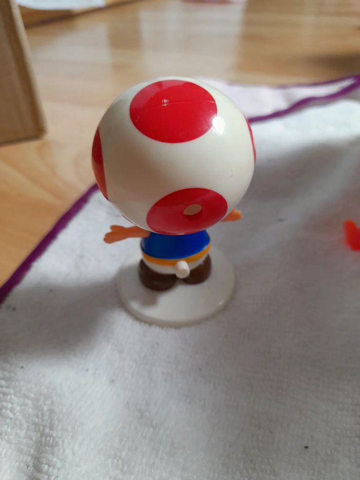 Bonjour Je vends une figurine Toad champignon Mario nintendo McDonald. En bon état, voir photos. Il suffit d'appuyer sur le bouton pour faire bouger les bras. C6