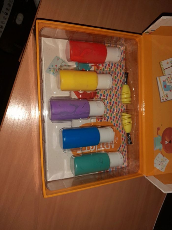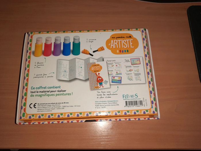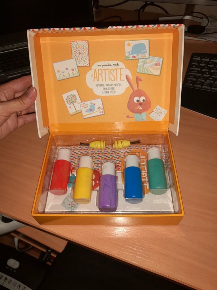 Bonjour Je vends un coffret ma première malle d'artiste des 4 ans, le coffret est neuf. Marque fleurus, coffret de peinture. C3