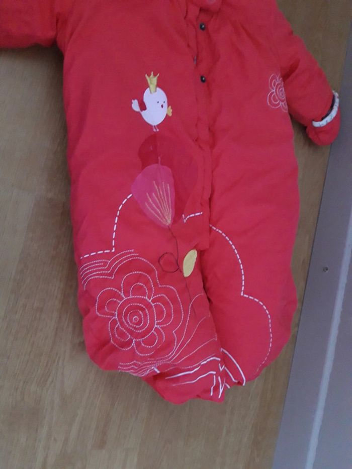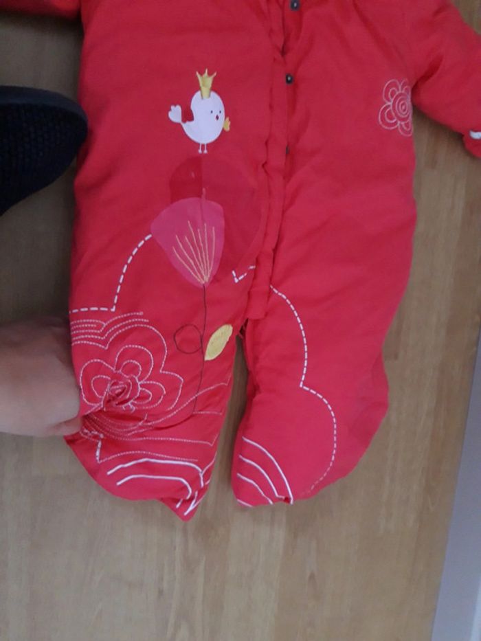 Bonjour Je vends une combinaison pilote orchestra taille 6 mois. Elle est en très bon état mais il y a du dessin qui c'est légèrement abîmé voir photos. La couleur est moins vif en vrai, elle est plutôt framboise. N'hésitez pas pour plus de renseignements.