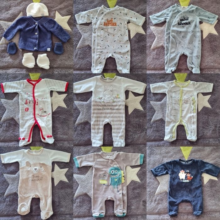 Lot de 8 Pyjamas et un ensemble layettes taille 1 mois