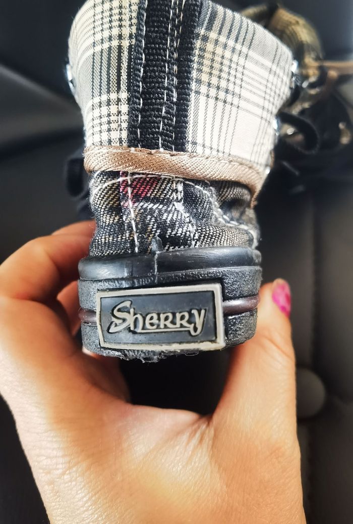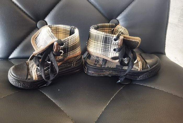Chaussures hautes pointure 19 Je les trouve mixte ( servis tres peu pour 1 garçons et une fille ) A lacet, languette devant qui se replis et se clips pour tenir les lacets, seul defaut en photo, le rectangle de marque au talon qui se decolle (jai préféré rien faire)
