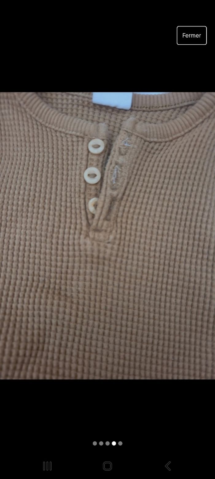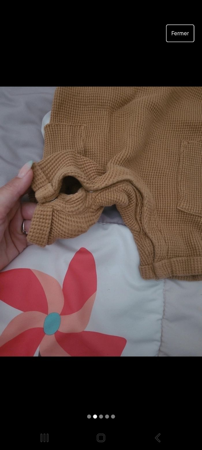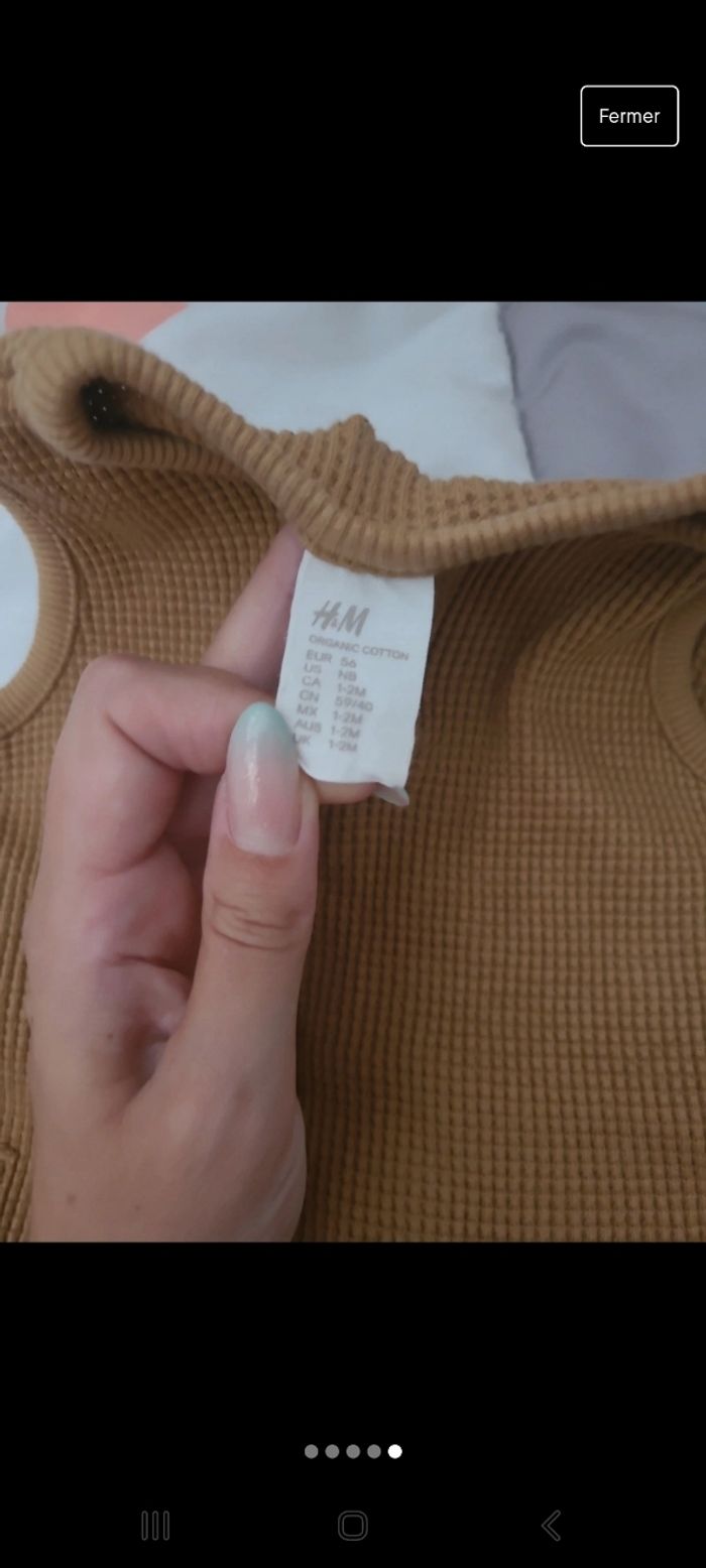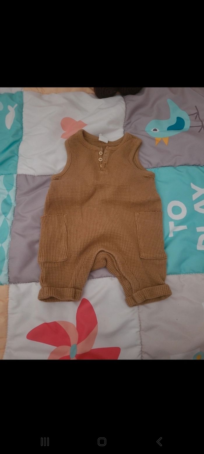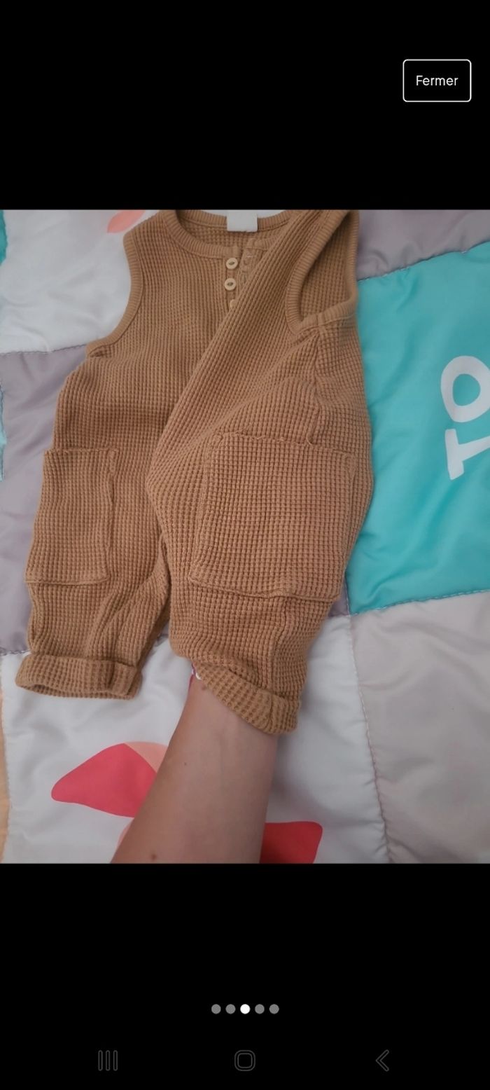 Combinaison couleur camel mixte taille 0-3mois taille H&M. Très bon etat. Se ferme par pression entre les jambes et bouton au niveau du torse