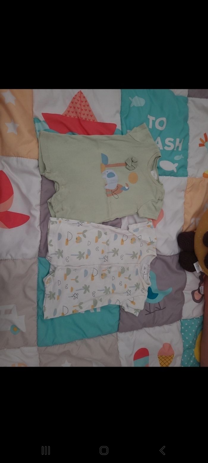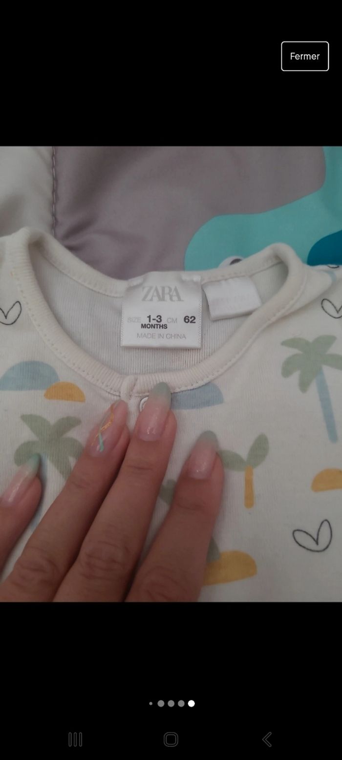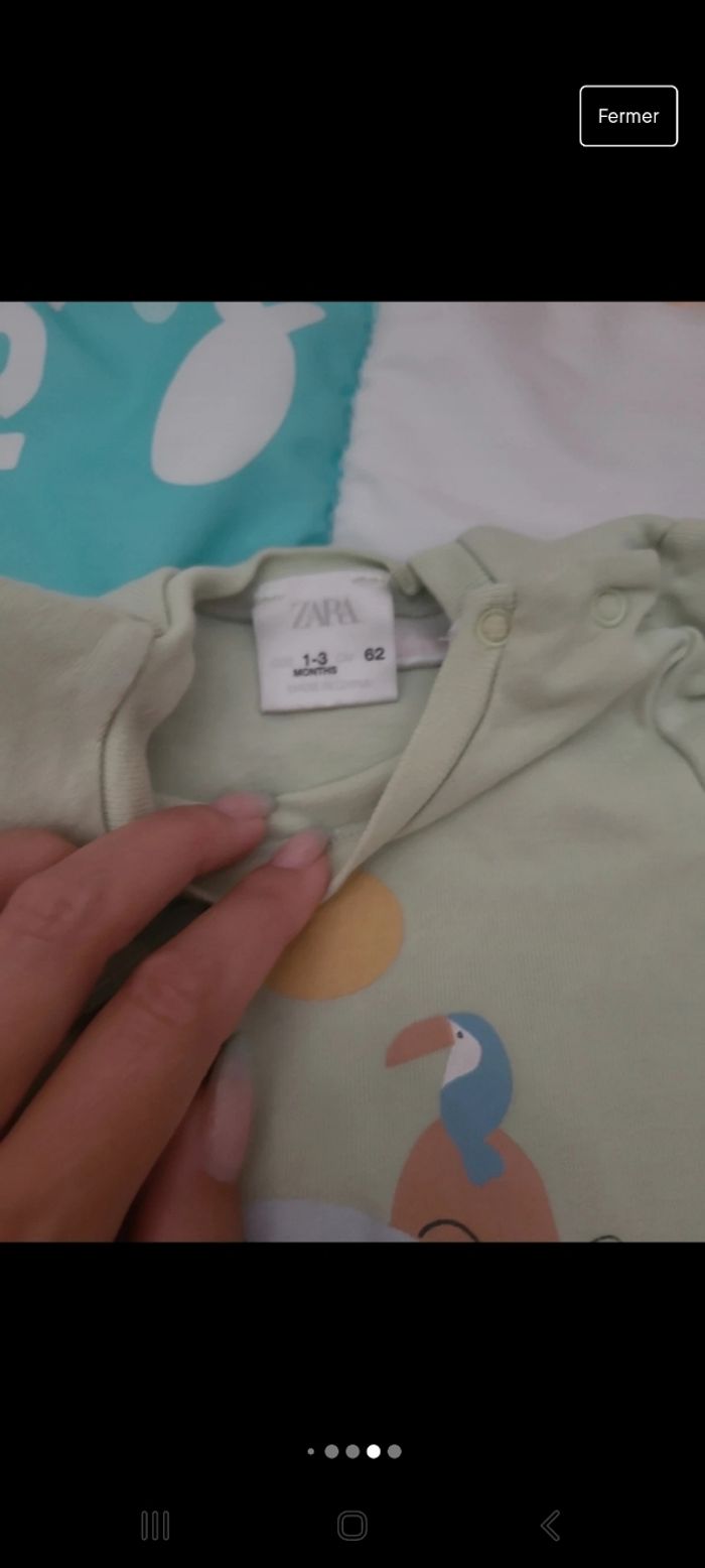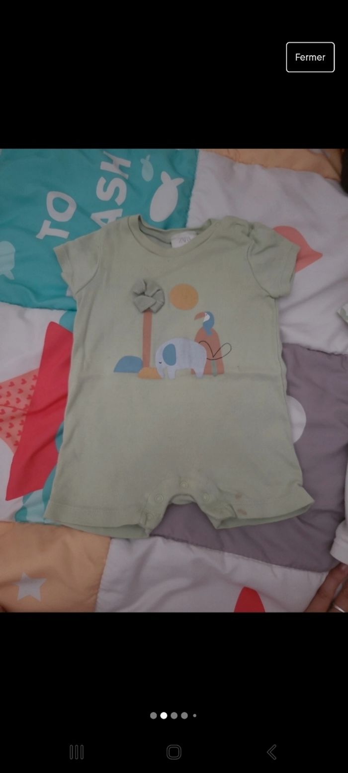 Lot de 2 combinaisons Zara mixte taille 1-3mois. Petite tâche sur la combinaison verte (voir photo)