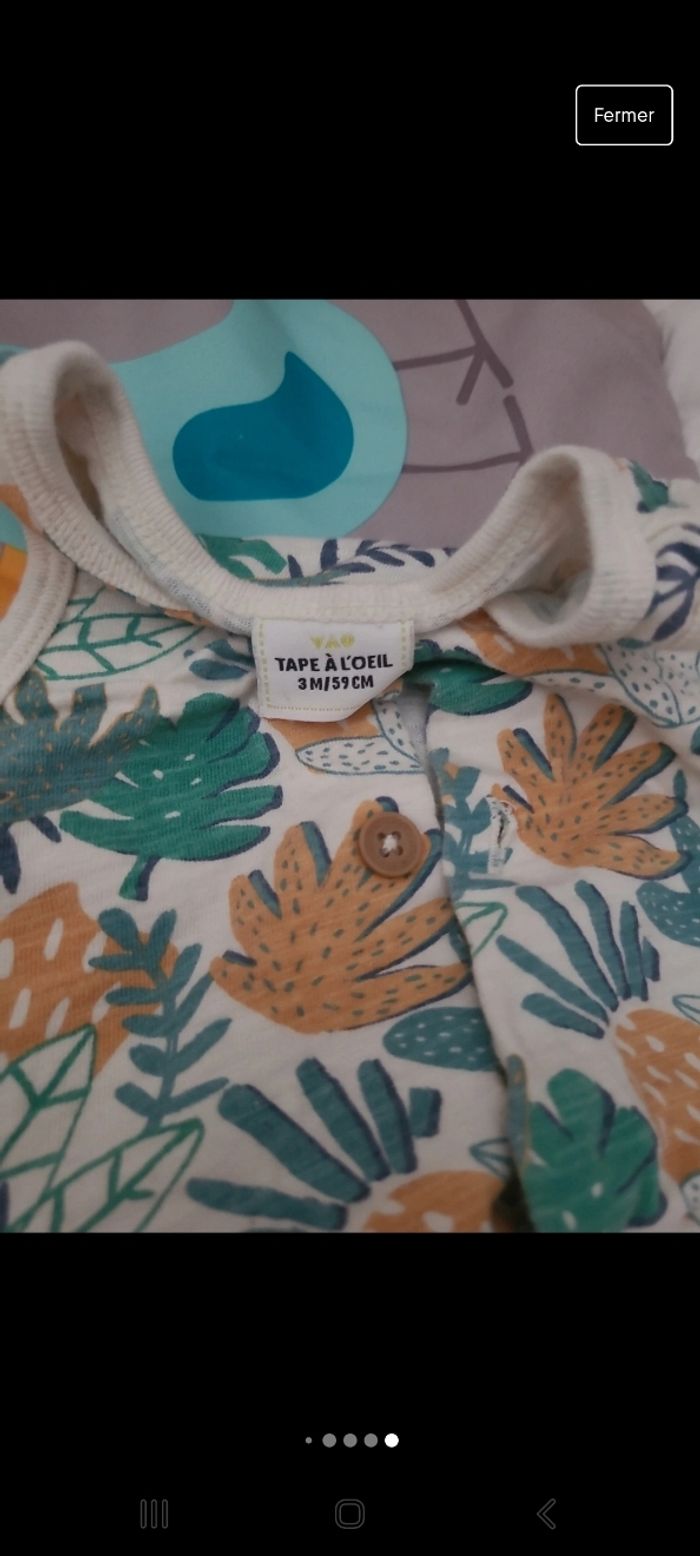 Lot de 3 combinaisons Kiabi, H&M et Tape à l'œil taille 0-3mois Très bon état