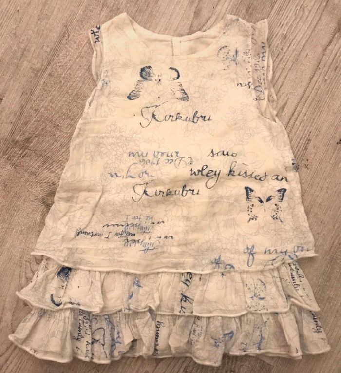 robe sans manches de la marque Alphabet taille 12 mois couleurs blanc et bleu légères traces d’utilisation occasion, bon état