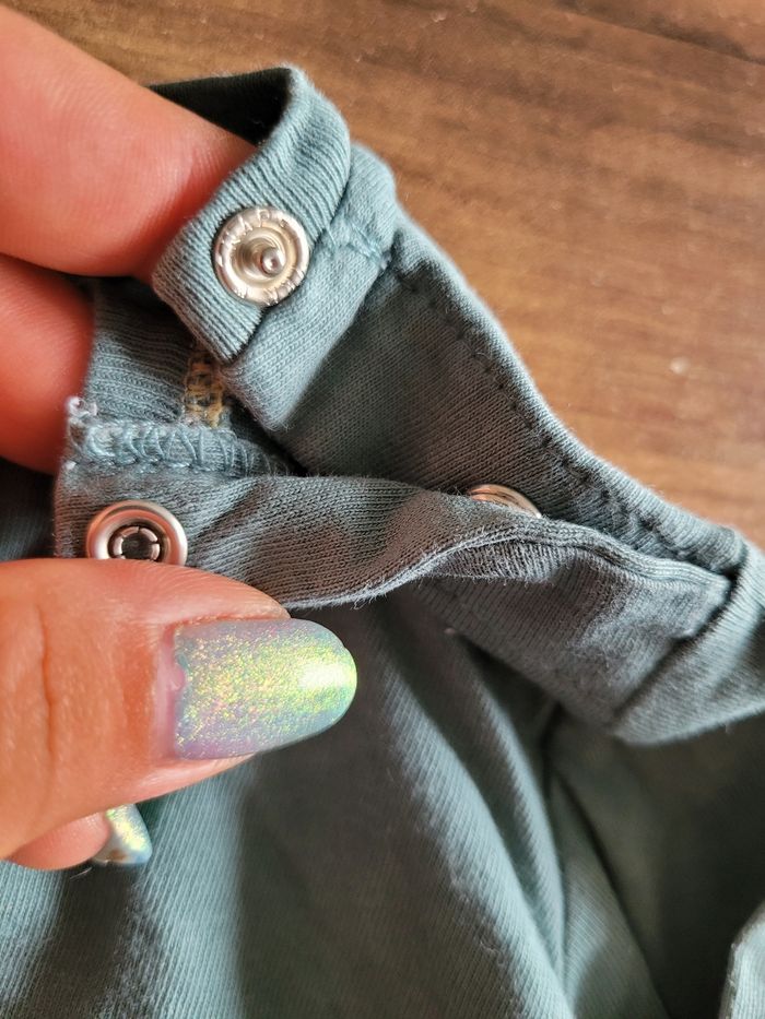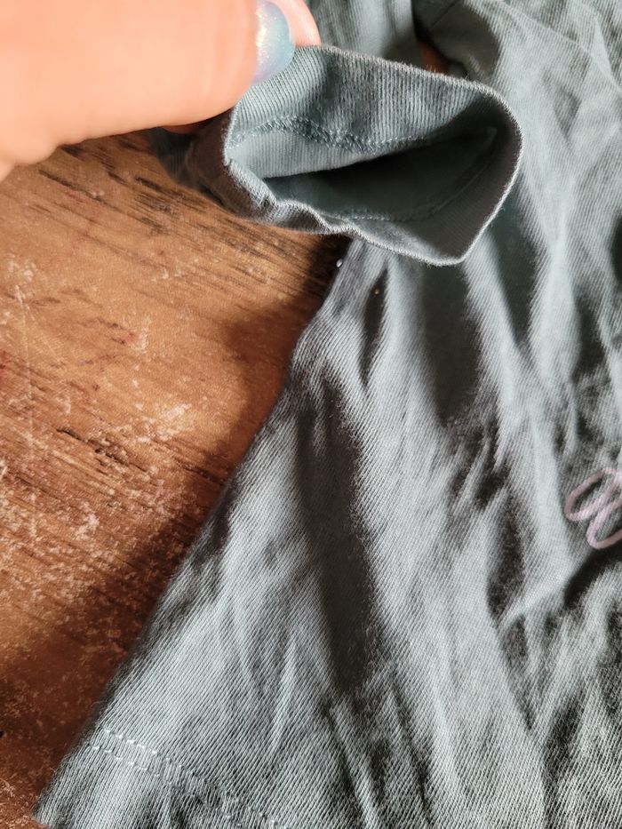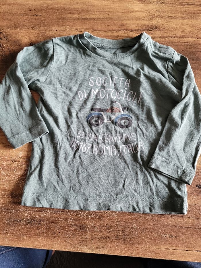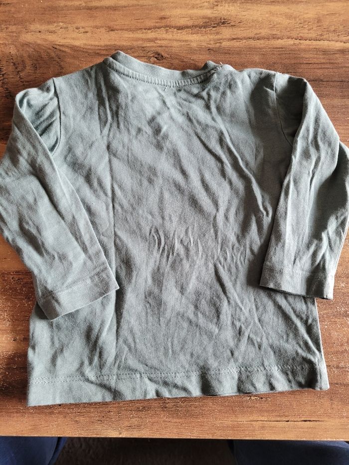 Petit T-shirt Manche longue Couleur vert Mi saison Taille 9 mois Attaché en haut a gauche Matière 100% coton