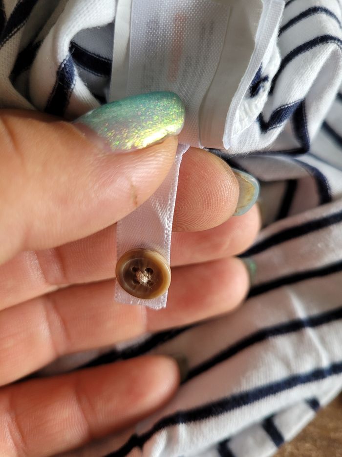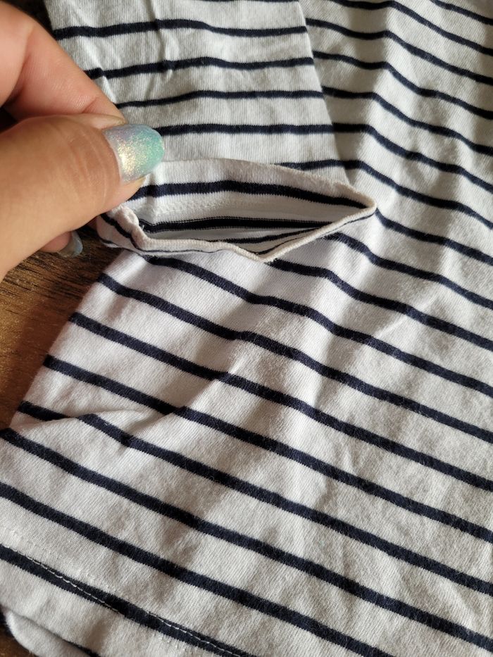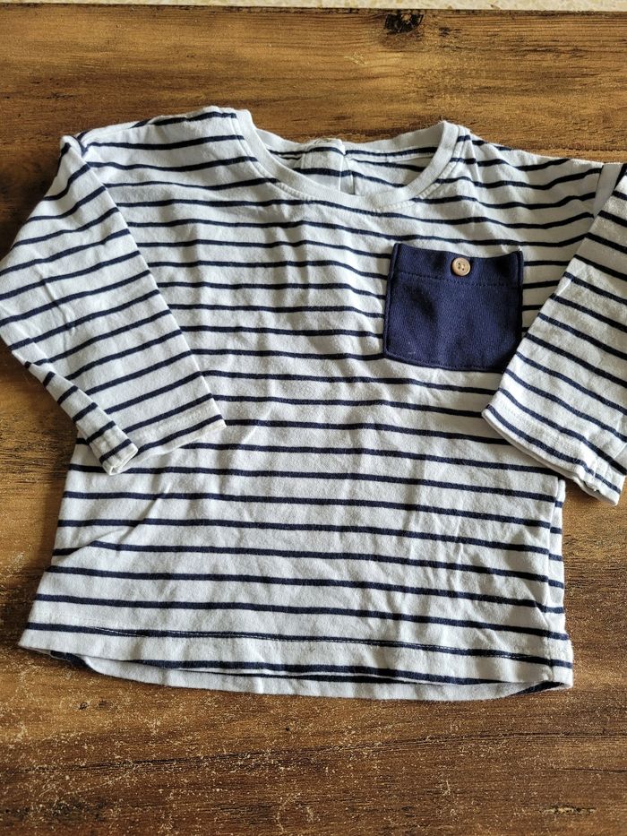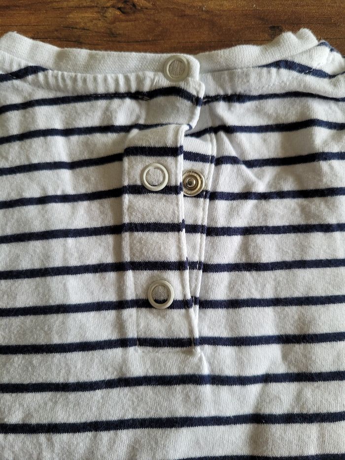 Petit T-shirt Manche longue Mi saison Couleur marine et blanc Attaché derrière Poche devant Matière 100% coton