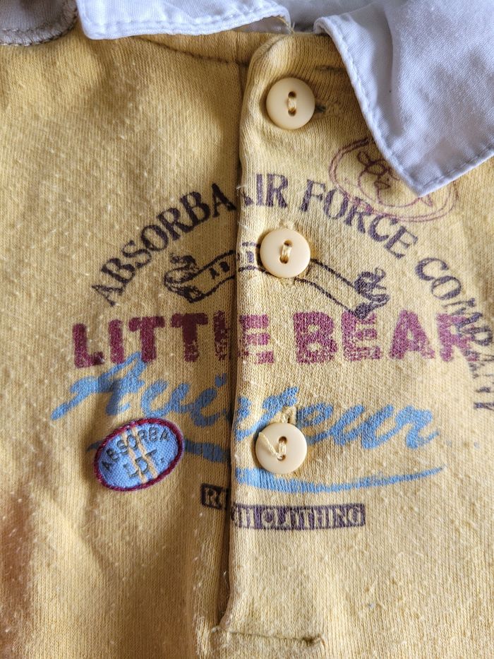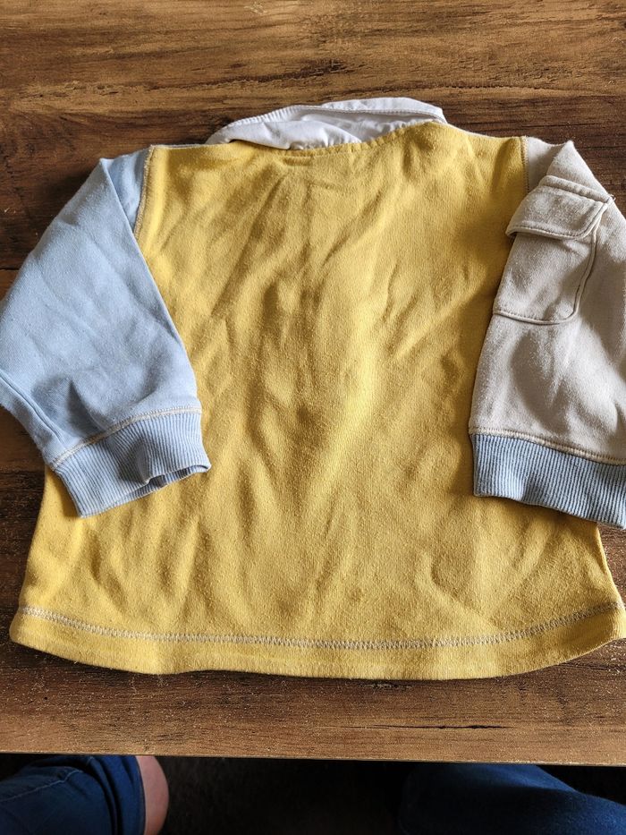 Petit polo Manche longue Mi saison Taille 12 mois Couleur crème jaune et bleu clair Attaché devant Matière 100% coton