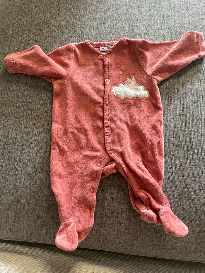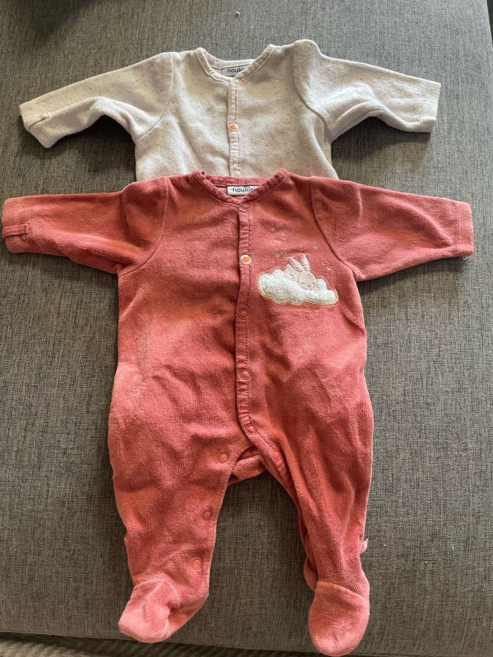 Lot de 2 pyjamas velours à manches longues, taille 0 mois, de la marque noukie’s, bon état