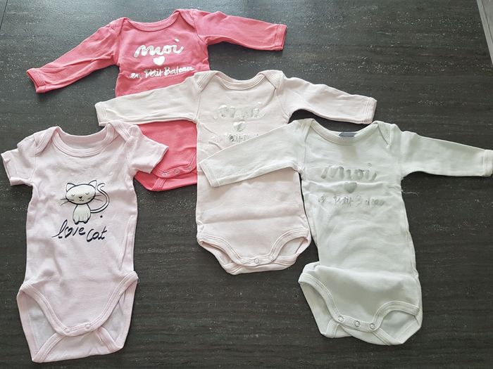 3 bodies manches longues petit bateau et un tex manches courtes. En bon état.