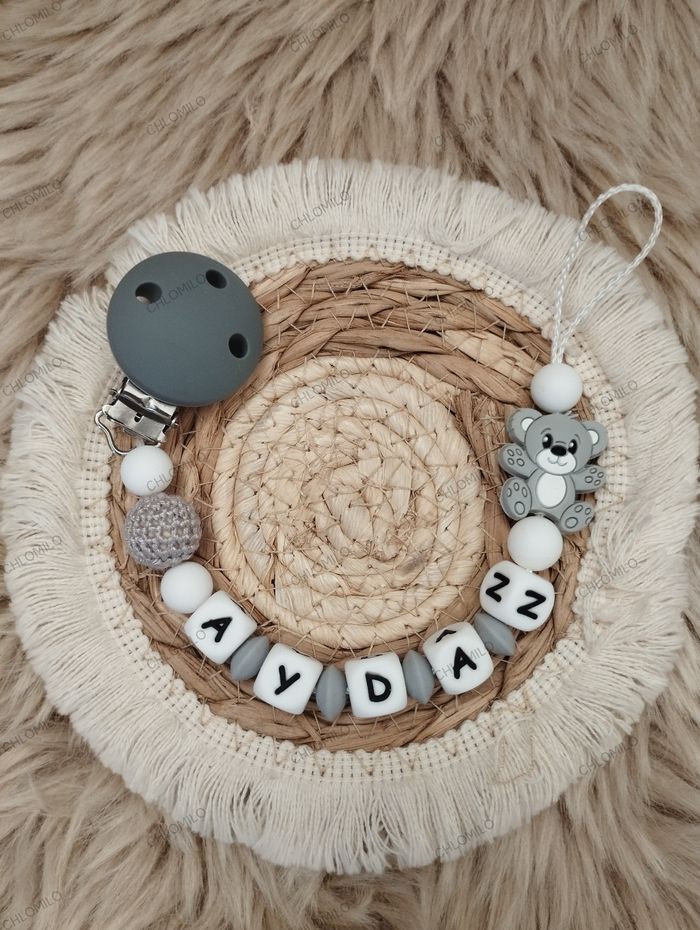 Attache tétine personnalisée Silicone alimentaire Sans BPA ni autres substances toxiques Différents coloris possibles