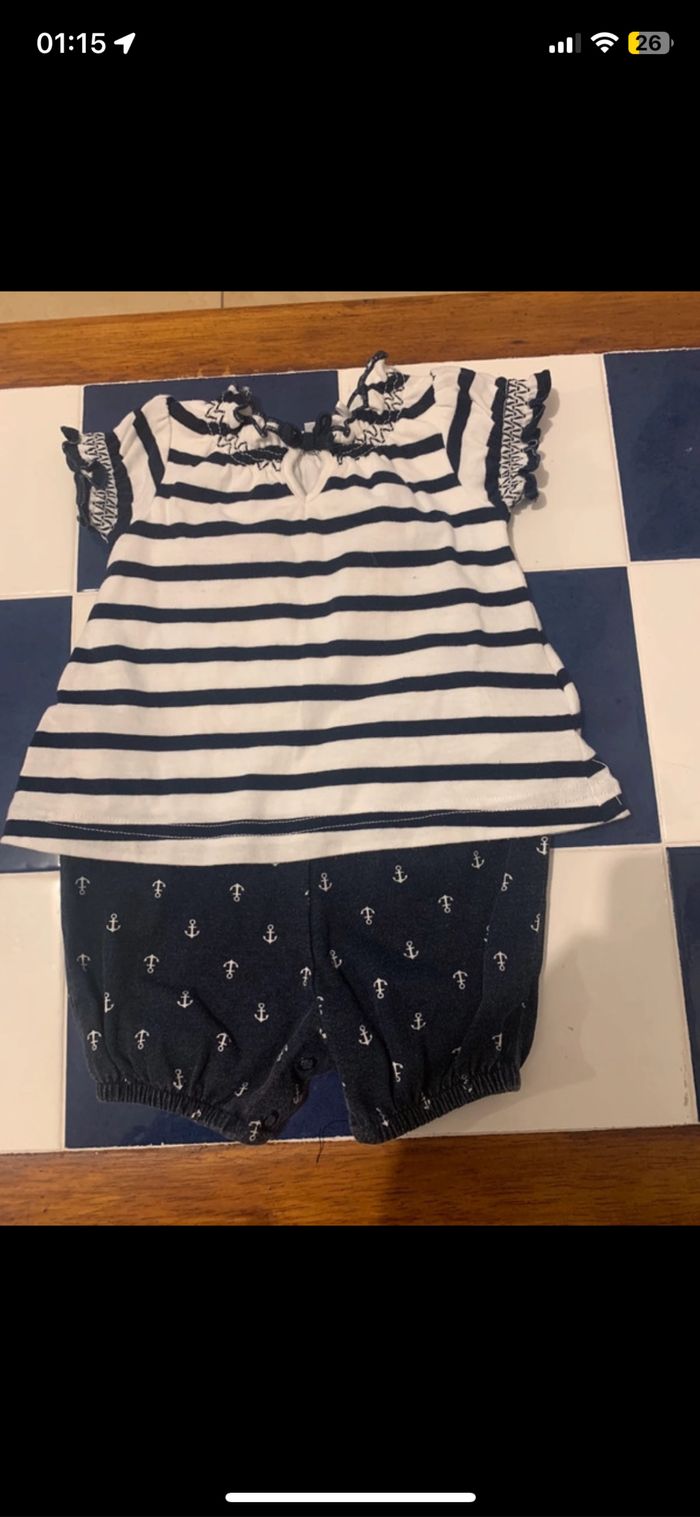 Ensemble tee shirt - pantalon 1 mois Petit bateau. État neuf