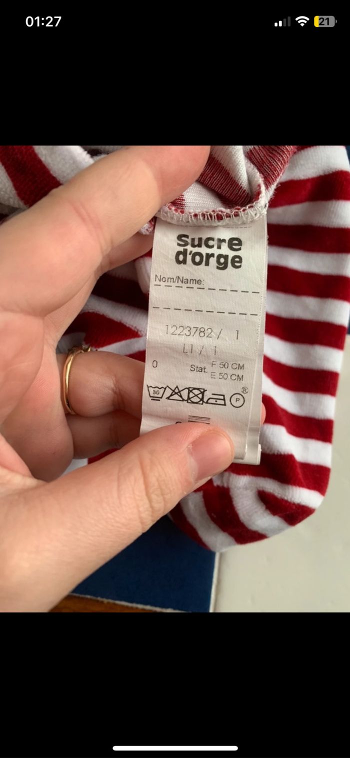 Grenouillère Sucre d’Orge 0 mois / 50 cm en très bon état