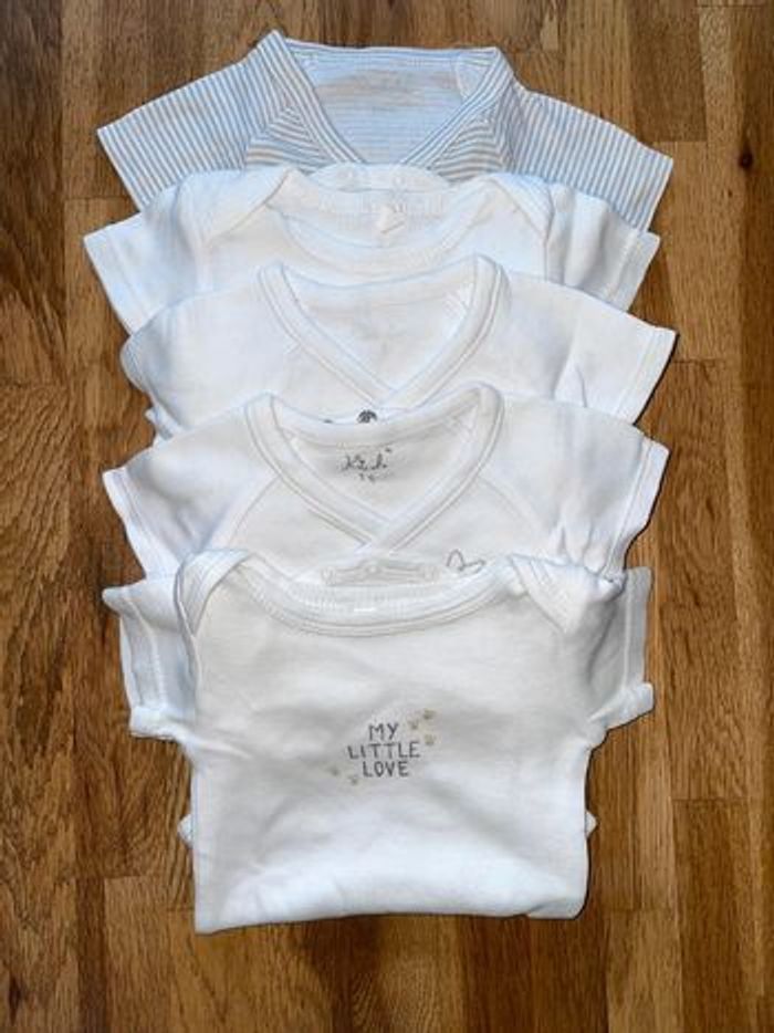 Lot de 5 bodies manches courtes 1 mois Marque kimbaloo Bon état