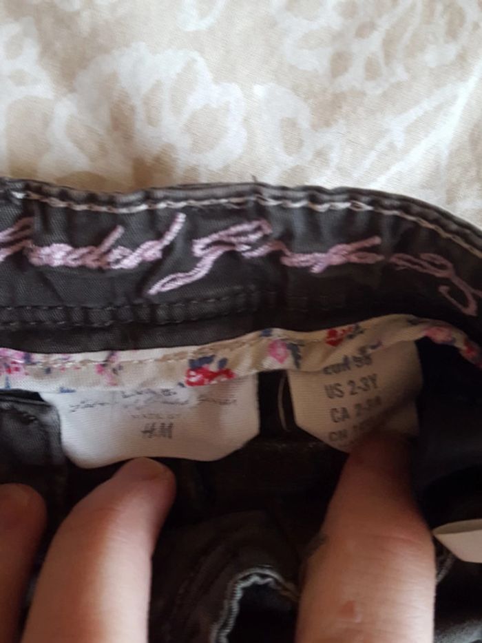 Pantalon marron H&M 2-3 ans (taille grand). Taille reglable. Bas de jogging Okaidi 3 ans gris clair. Taille élastique.