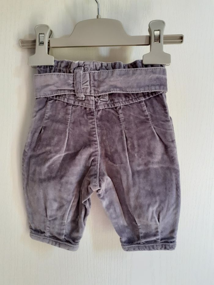 un pantalon en velours mauve. Taille 3 mois. Porté une saison.