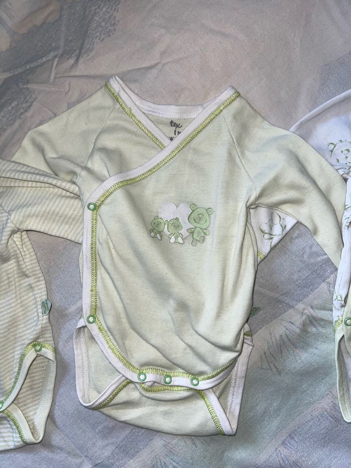 Lots de 3 bodys manches longues de couleurs verts blanc très peu mis .
