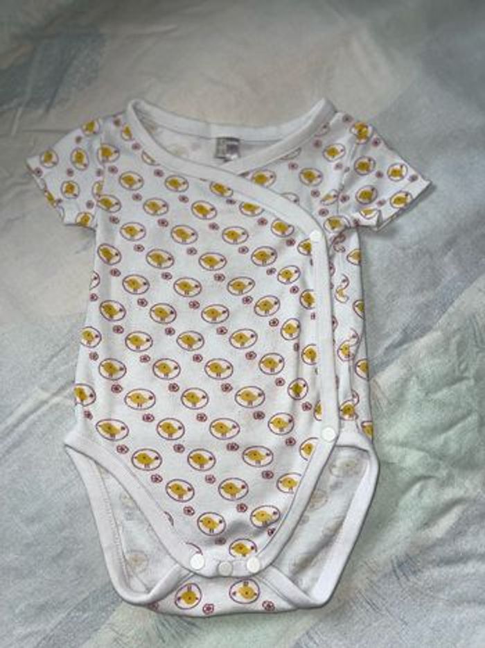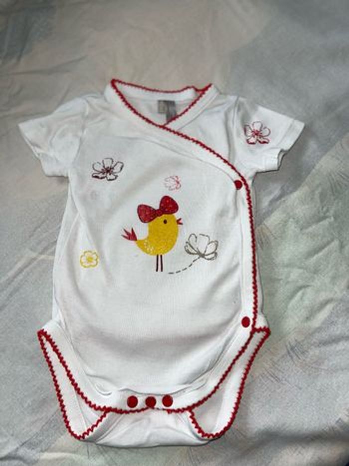 Body manches courtes , quelque légère taches au dos du body avec le poussin au milieu visible sur la photo