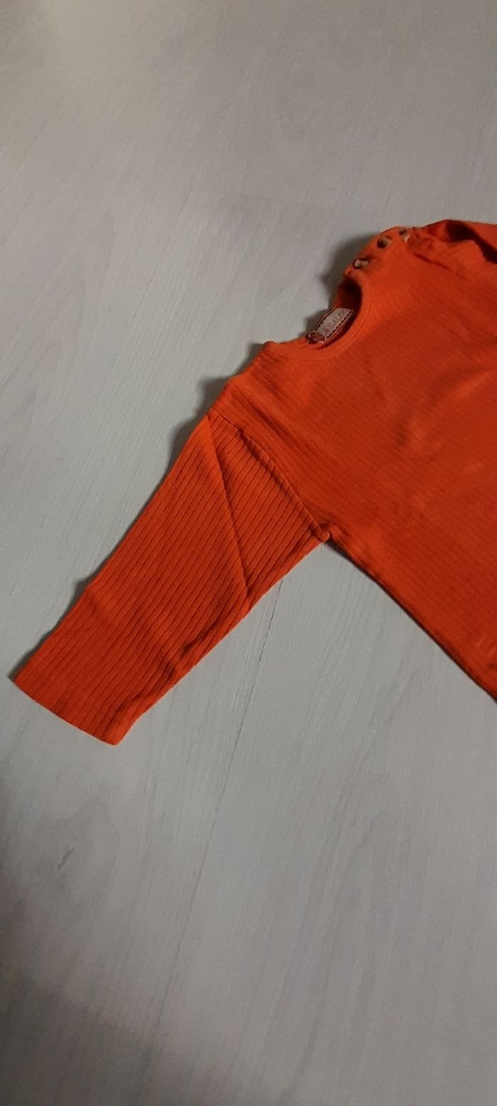 Tee-shir manches longues T 24 mois Marque KIMBALOO Couleur corail Attache boutons sur épaule gauche 100 % coton Très très bon état