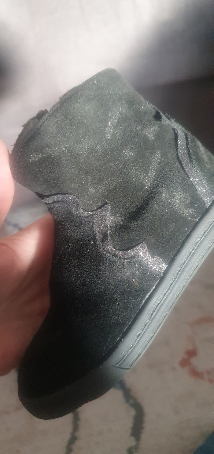 Bottines en daim pour fille. Noires avec des motifs petites plumes brillantes. Vert baudet, comme neuves