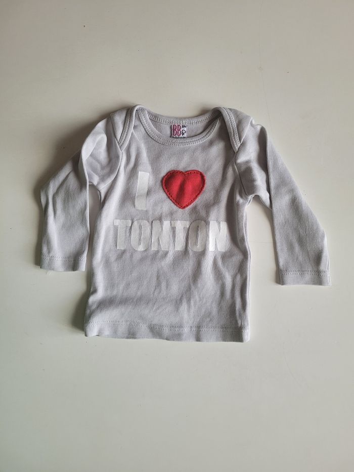 T shirt manches longues avec coeur en relief J'aime tonton - i love tonton Taille 6 mois