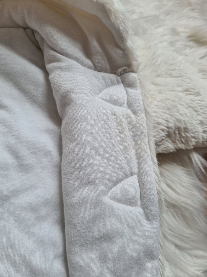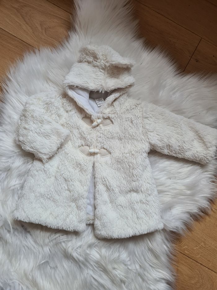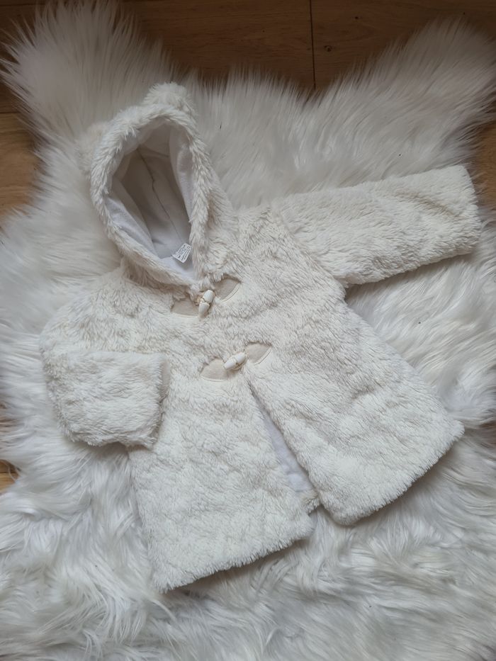 Manteaux blanc à capuche en fourrure En très bonne état, il y a juste une tout petite tache à l'intérieur ça ce voit presque pas ( regarder dernière photo) 3mois