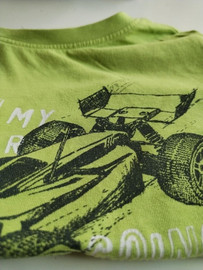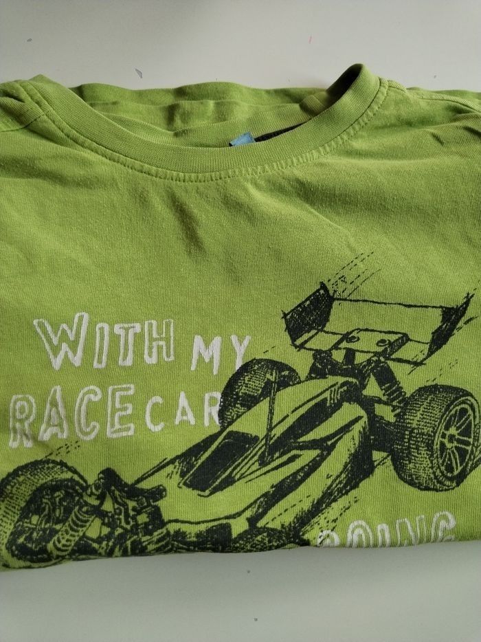 Tbeg T shirt manches longues Vert anis imprimé blanc et noir voiture de course PRIX BRADÉ