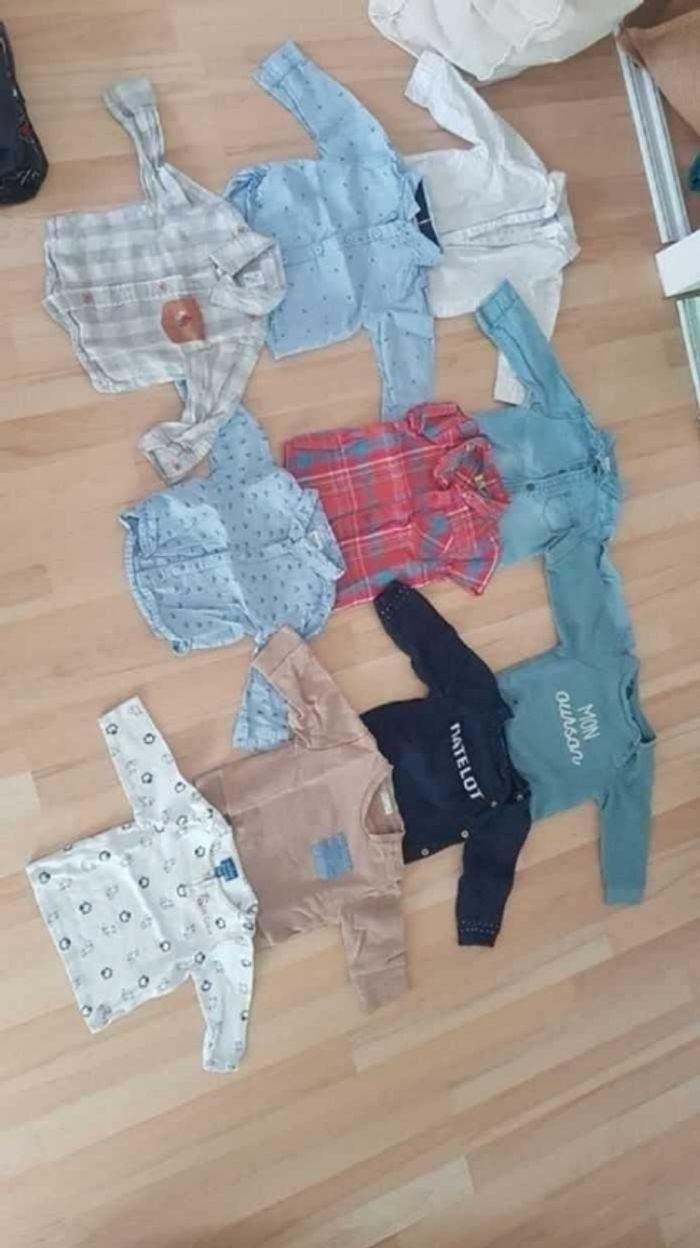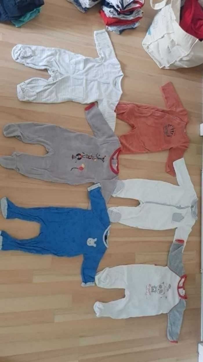 Lot de vêtements garcon 9 mois Les 2 photos avec les 2 ensembles pyjama vache et celle avec les bavoirs sont offerts. Marque Kiabi, orchestra ou encore petit bateau. Et d autres.