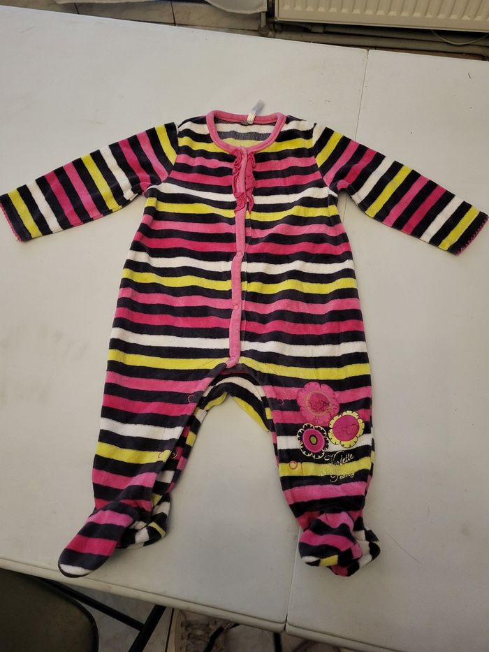 Pyjama raye rouge jaune marron 6 mois Ouverture devant