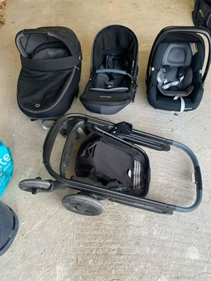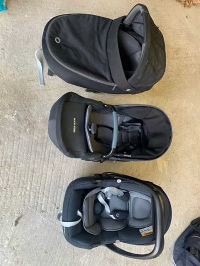 Nous vendons ce kit de poussette trio ( 3 en 1 ) . Bébé grandit donc plus besoin de tout l’ensemble , tout est en très bonne état , châssis légèrement rayer , le tout est propre aucune tache sur chaque élément . Facile a modifier , châssis modulable pour le ranger que se soit à la maison ou dans la voiture .