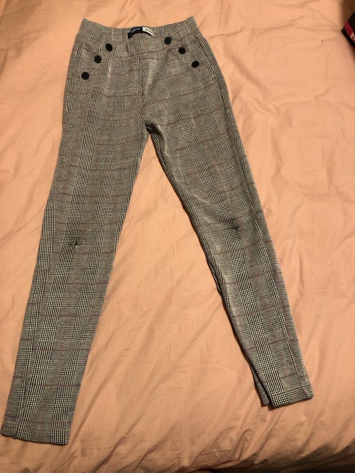 Jegging à carreaux en très bon état malgré les marques aux genoux. Ceinture ajustable. Taille 10 ans.