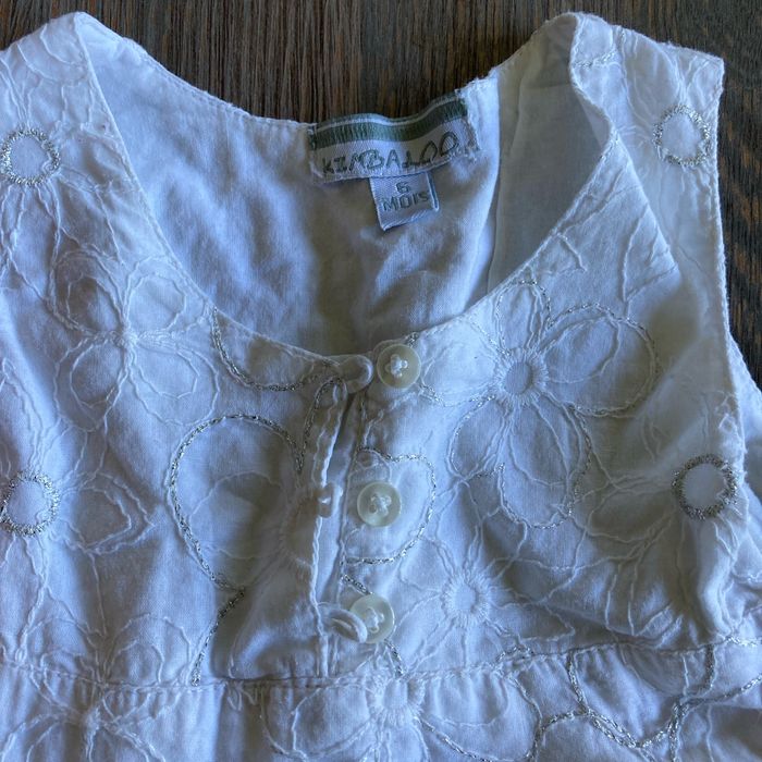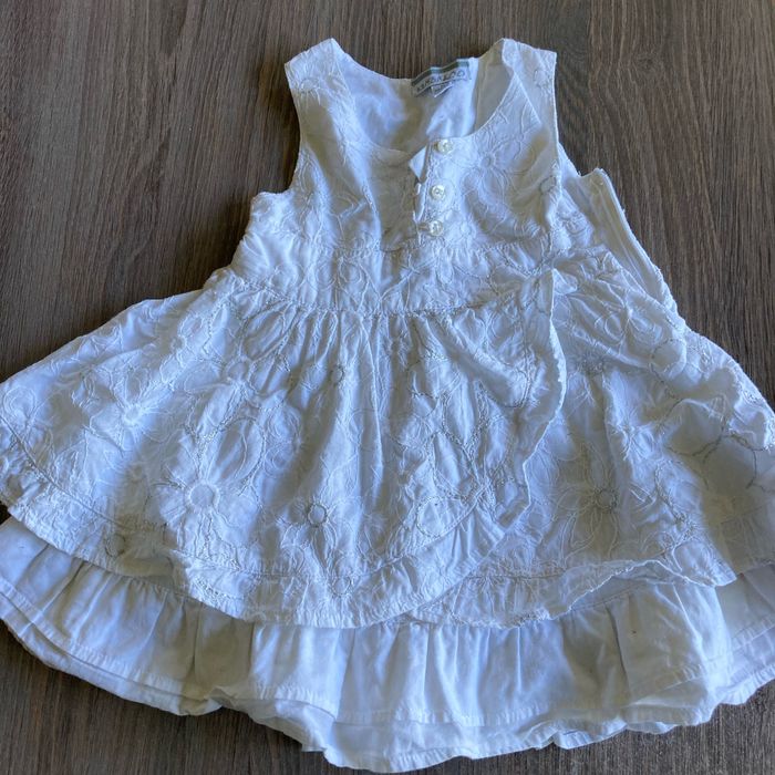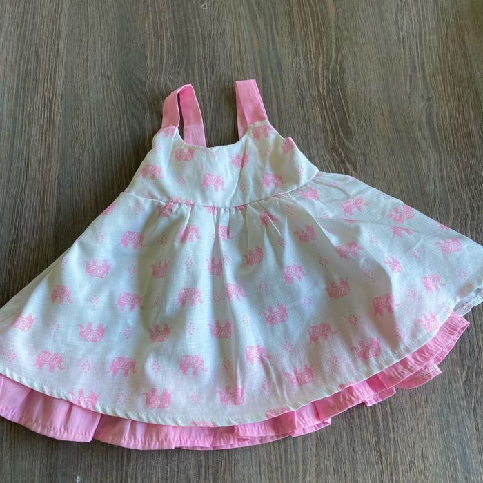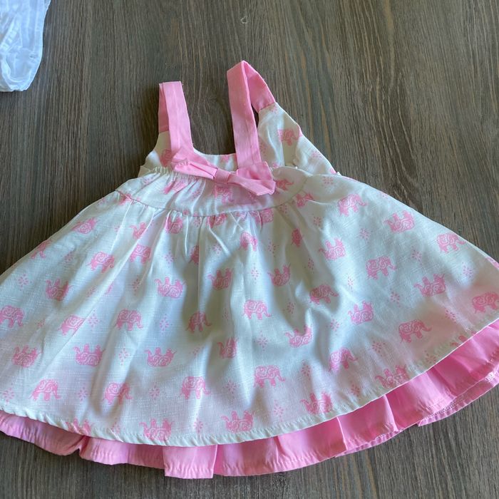 Vends deux robes en taille 6 mois. Une robe blanche et une robe blanche et rose avec des éléphants dessus.