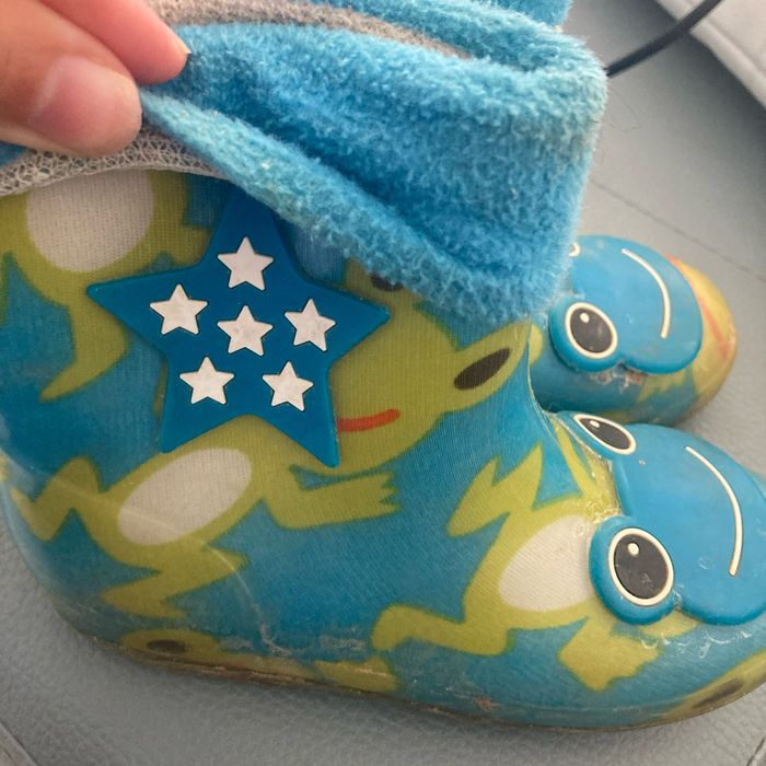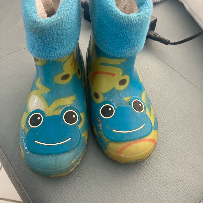 Bottes caoutchouc, chaussettes moltonnées utilisées et complètement retirable. Taille 26 .