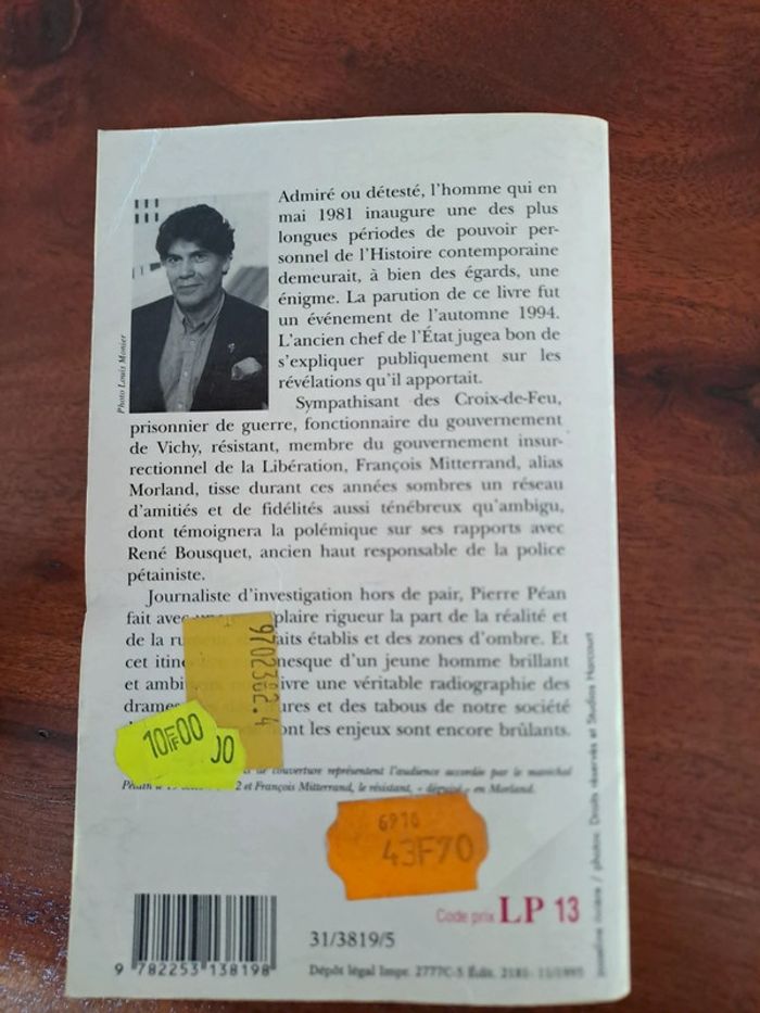 Livre Une Jeunesse Française, François Mitterand 1934-1947 de Pierre Péan aux Éditions Le Livre de Poche. Bon état malgré son âge