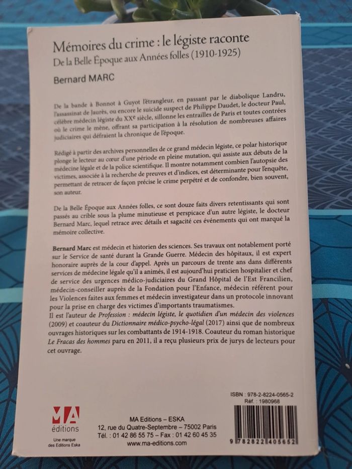 Livre Mémoires du crime: Le Légiste raconte La bande à Bonnot- Landru- l'assassinat de Jean Jaurès... De la belle époque aux années folles ( 1910-1925) MA Éditions - ESKA